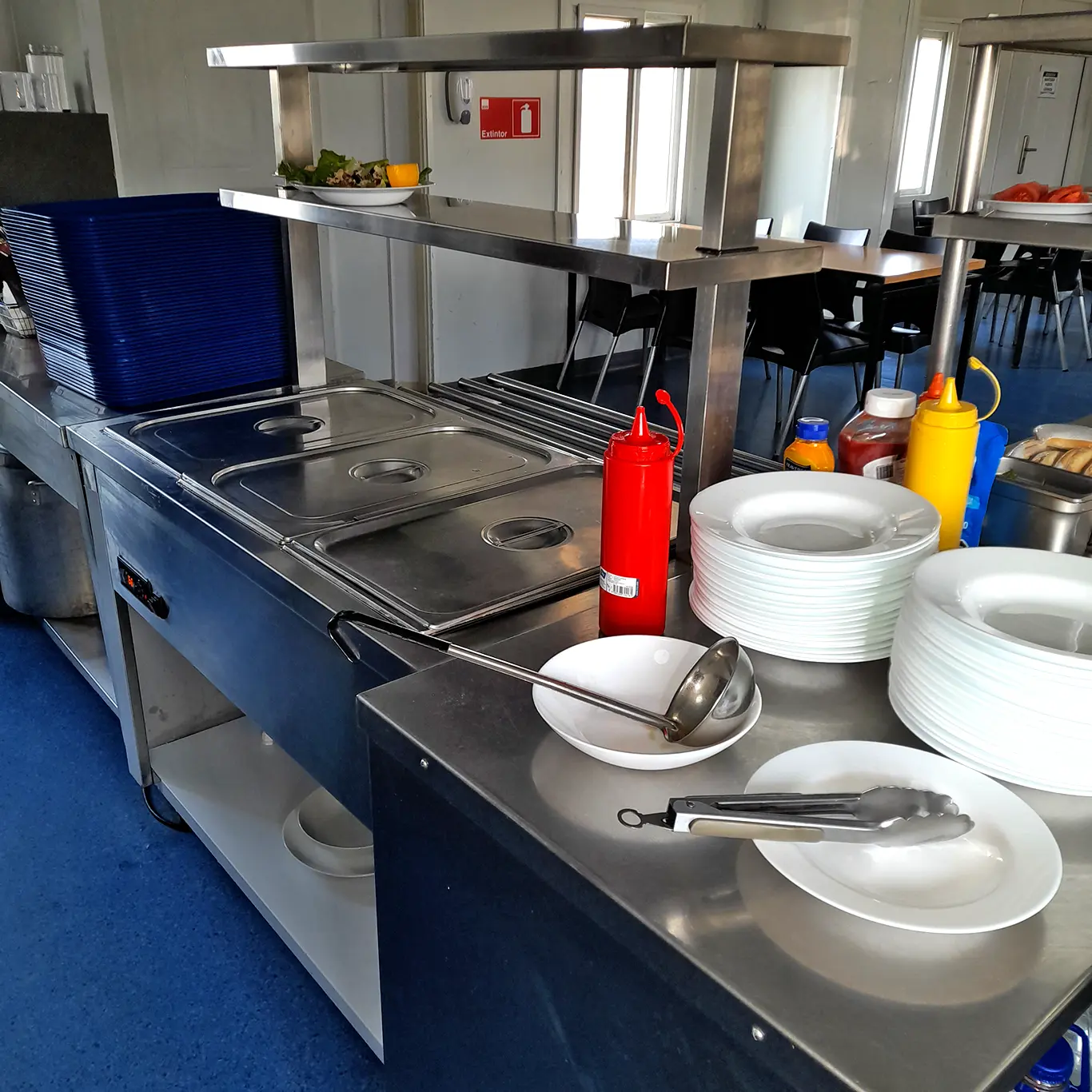 Cocinas industriales, hornos, refrigeradores y congeladores dedicados para asegurar cadena de frío y preparaciones óptimas.